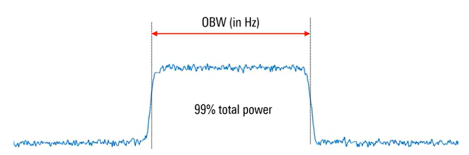 OBW (Occupied Bandwidth, 점유대역폭)는 미국과 같은 일부 지역의 장비에 대해 지정된 규정 요구사항입니다. 할당된 채널 주파수를 중심으로 전송 스펙트럼의 총 통합 전력의 99%가 포함되는 주파수 대역폭을 의미합니다.